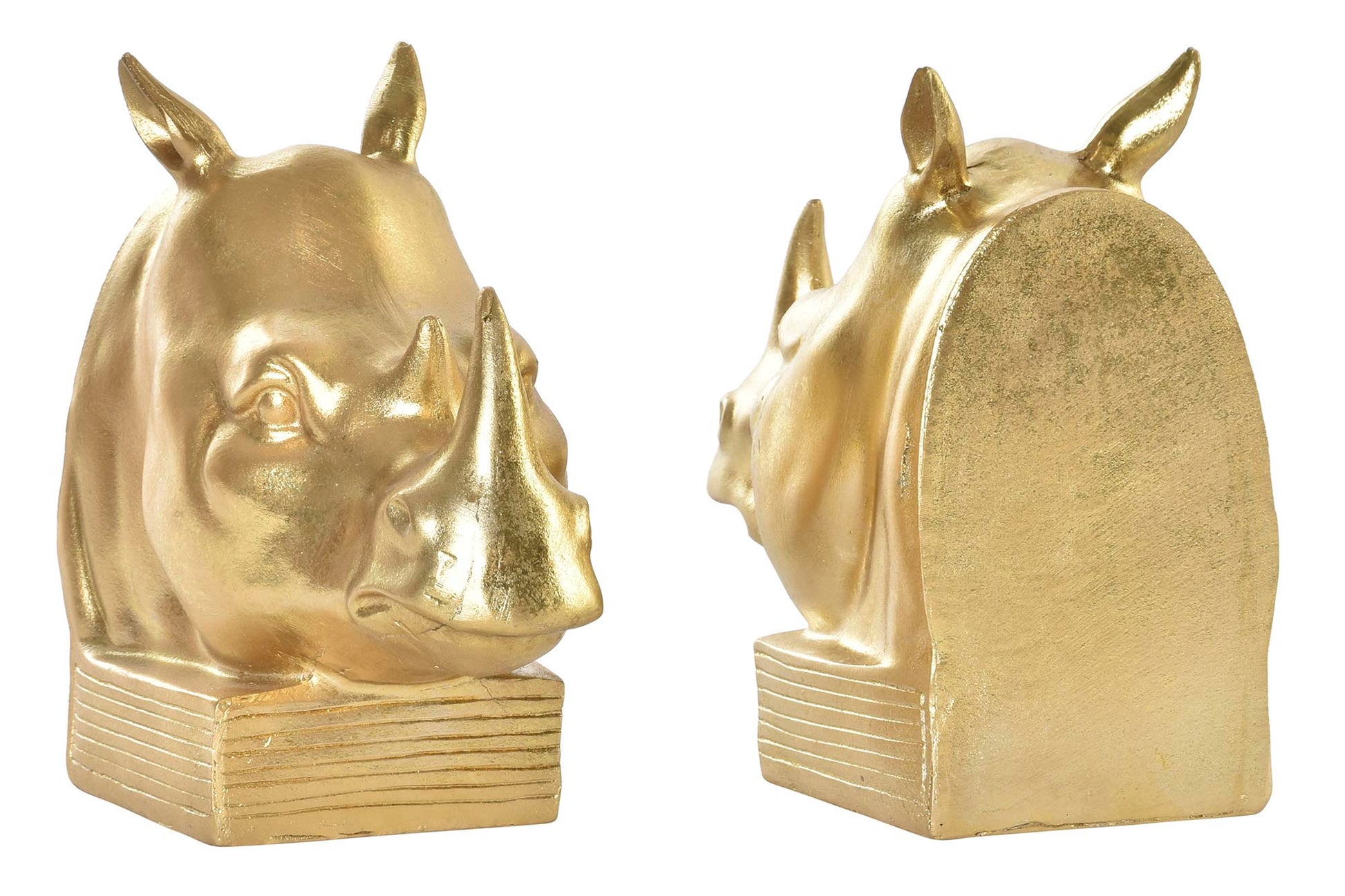 Buchstützen-Set Nashörner – Goldfarben – 2-teilig – 14,5 cm hoch