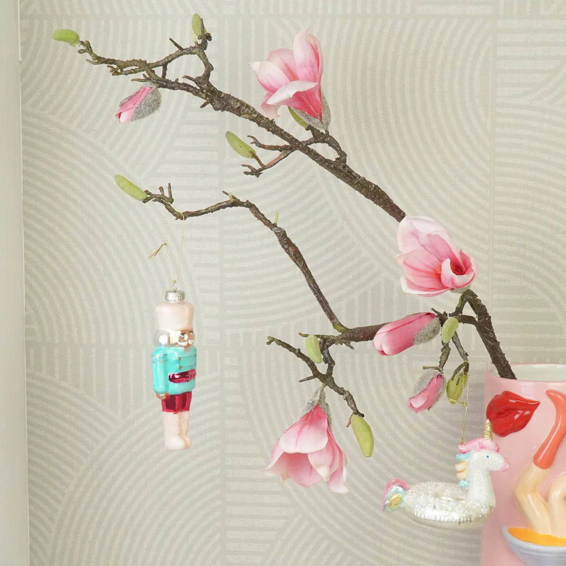 - Kombiniere dieses Einhorn mit unserer Flamingo-Weihnachtskugel und dem VW-Bus für einen fantasievollen Baum mit sommerlichem Flair.