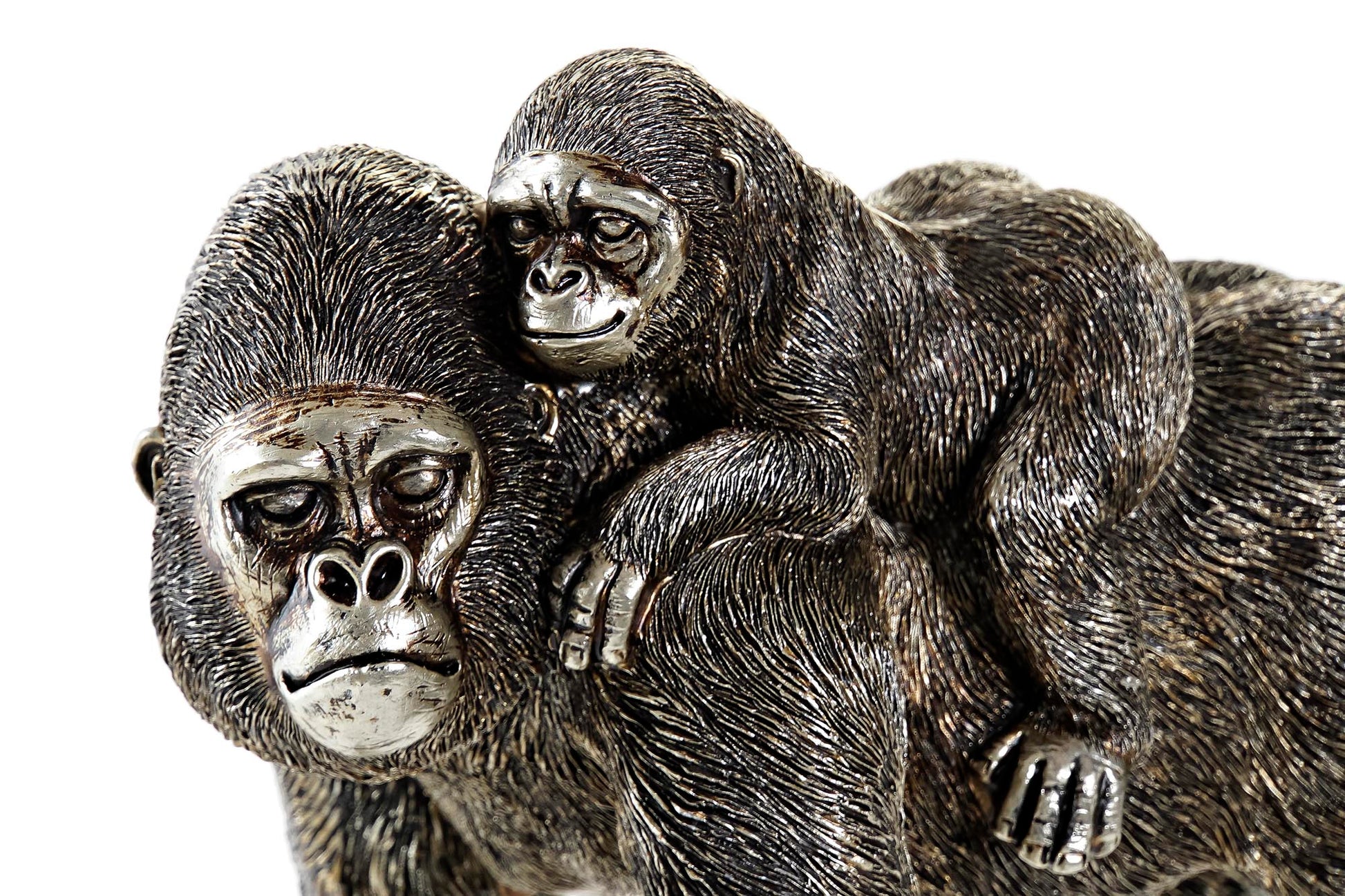 Add a powerful and loving touch to your home with this stunning statue of a gorilla carrying a baby on its back. The muscular appearance of the adult gorilla combined with the playful young one symbolizes protection, strength, and family ties – a valuable symbol in a stylish form.