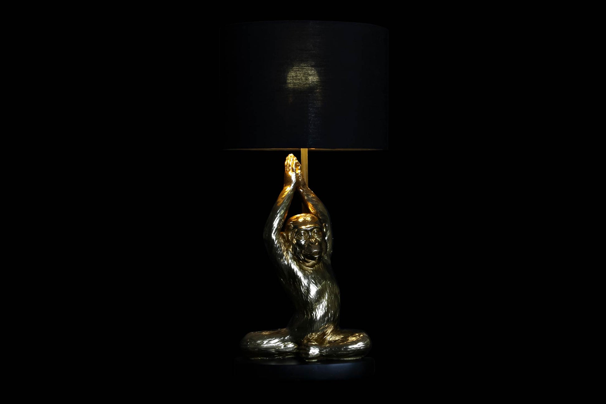 Golden Monkey in Yoga Pose Table Lamp with Black Shade – 49 cm