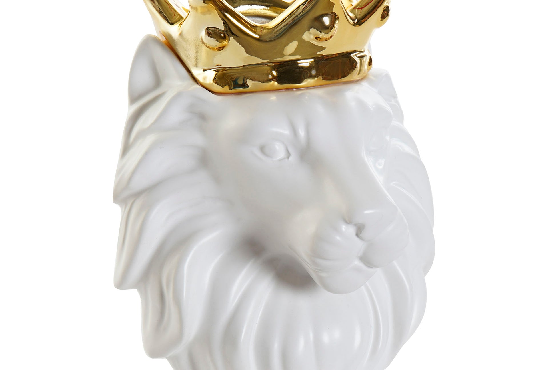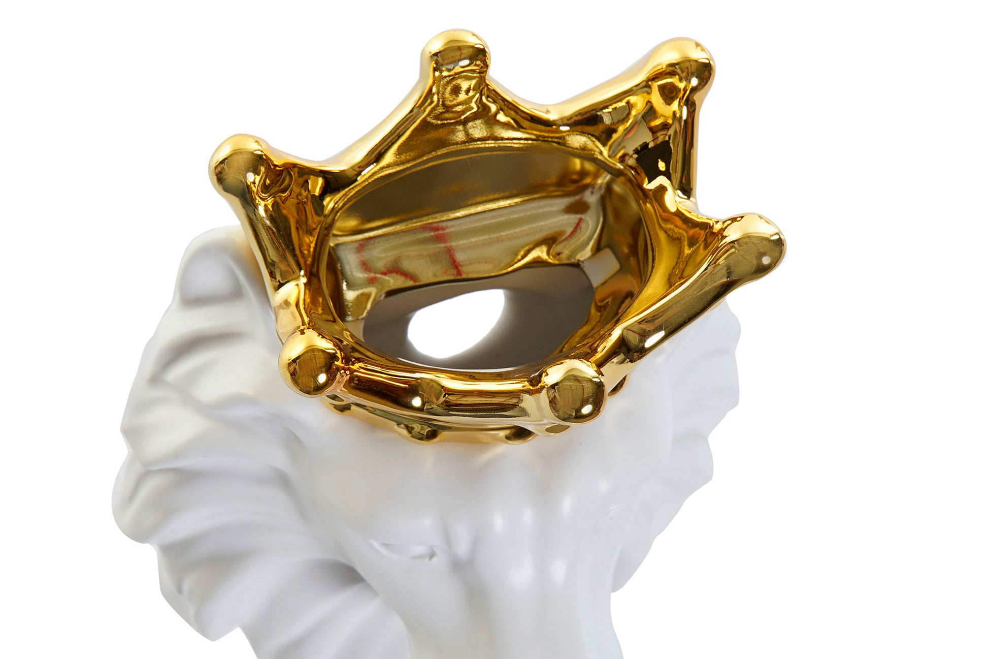Add strength and class to your wall with this unique wall vase, shaped like a white lion's head with a gold crown. A unique piece that effortlessly adds luxury and personality to your interior. Whether you fill it with dried flowers or simply let it shine as a standalone piece of art, this wall vase is sure to be an eye-catcher.