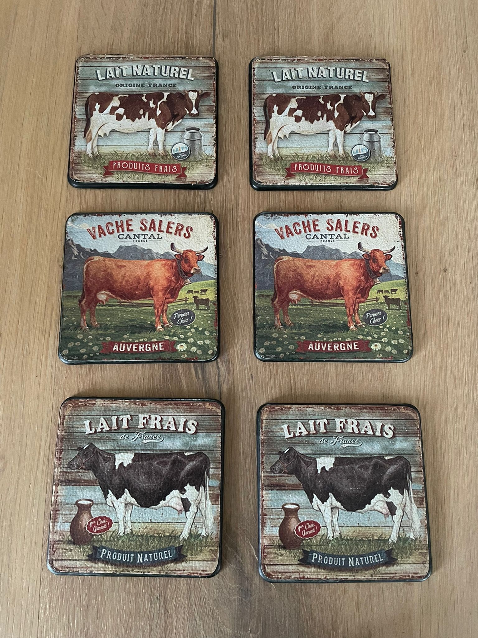 ✔ Inclusief 6 onderzetters – drie verschillende koe-ontwerpen, elk dubbel aanwezig
