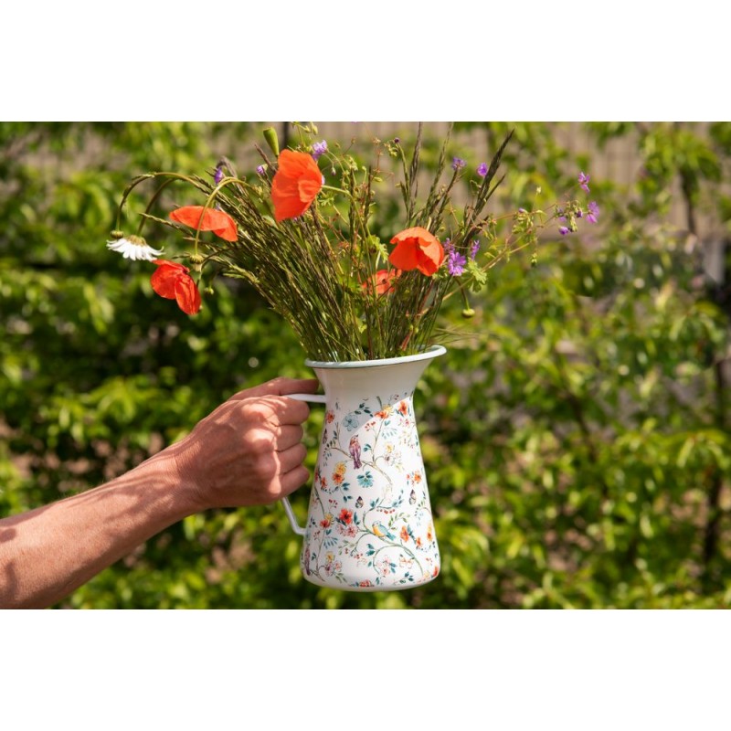 Water geven was nog nooit zó leuk én stijlvol als met deze decoratieve gieter met vogeltjespatroon van Clayre & Eef. De charmante illustraties van vogels en bloemetjes maken van deze metalen waterkan een waar pronkstuk. En het beste? Je hoeft hem niet op te bergen – deze gieter staat prachtig als vaas of als decoratief item op je vensterbank of tuintafel!