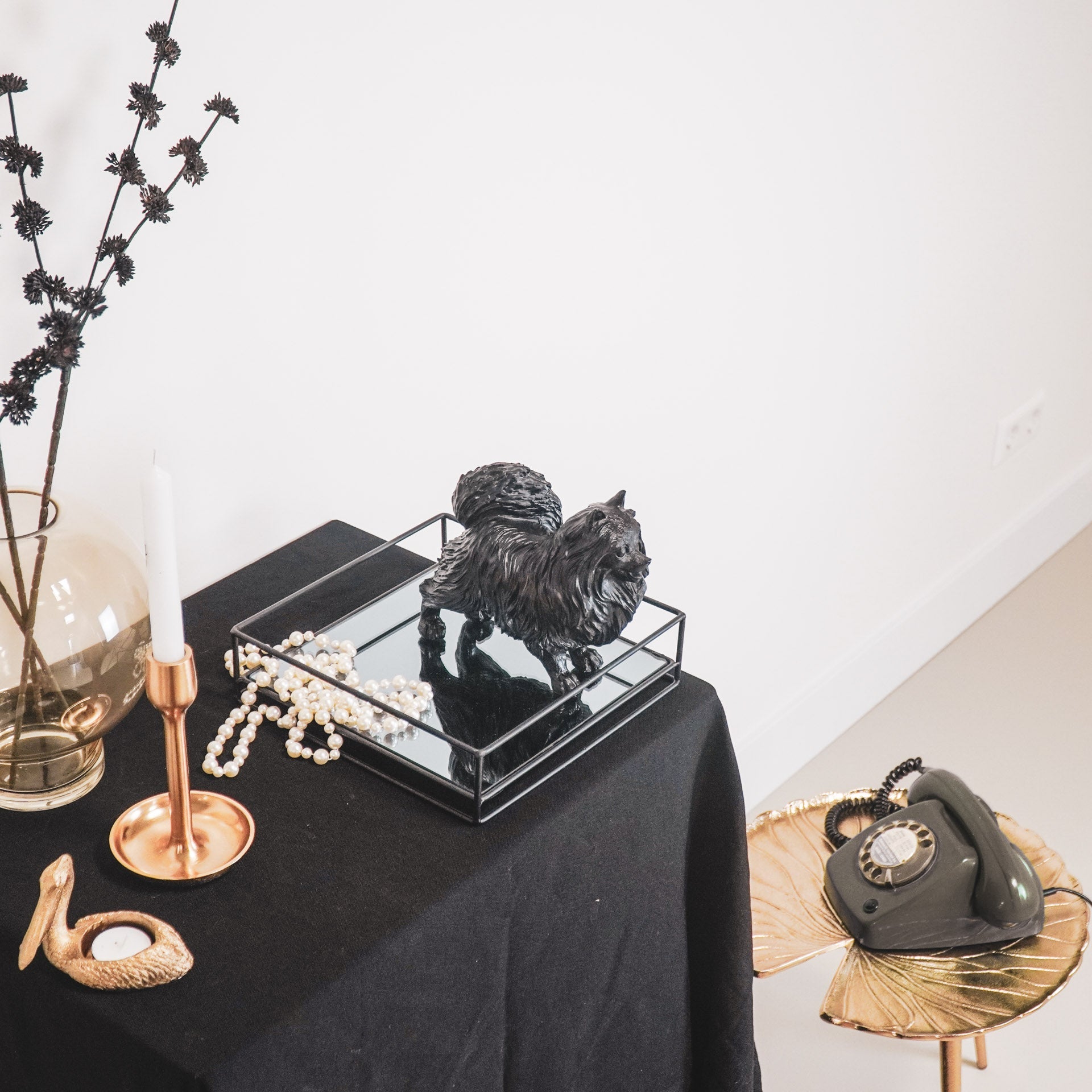 - Zet dit hondenbeeldje in een open kast met andere zwarte accenten voor een luxe ton-sur-ton look