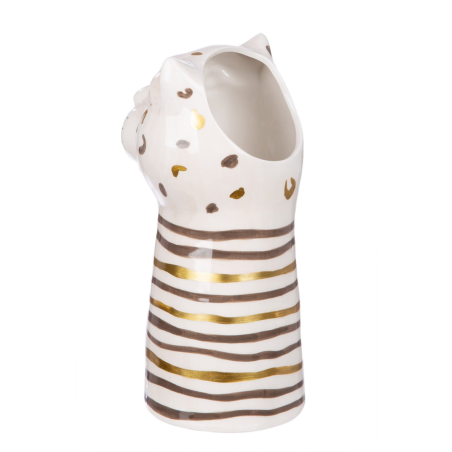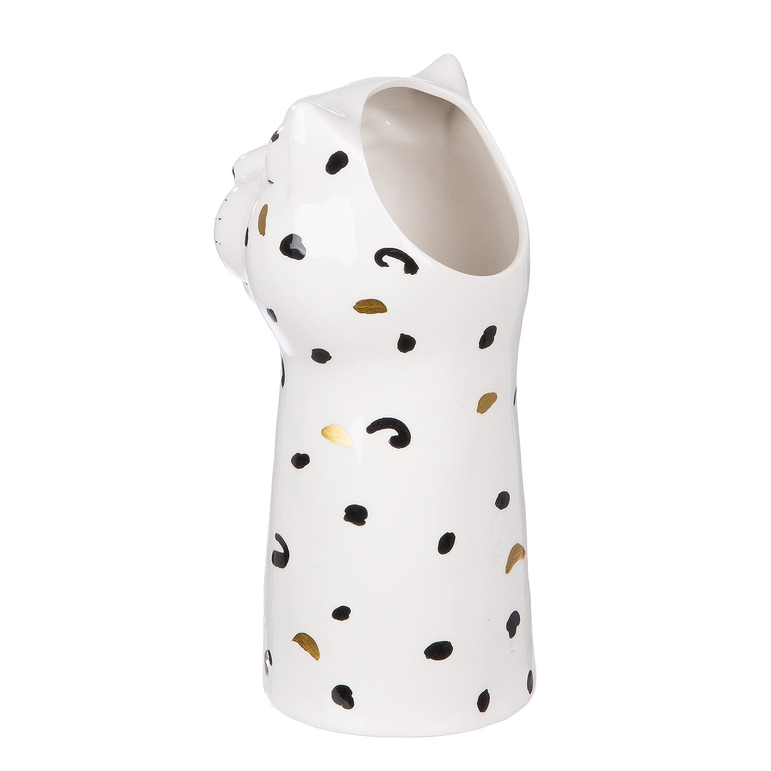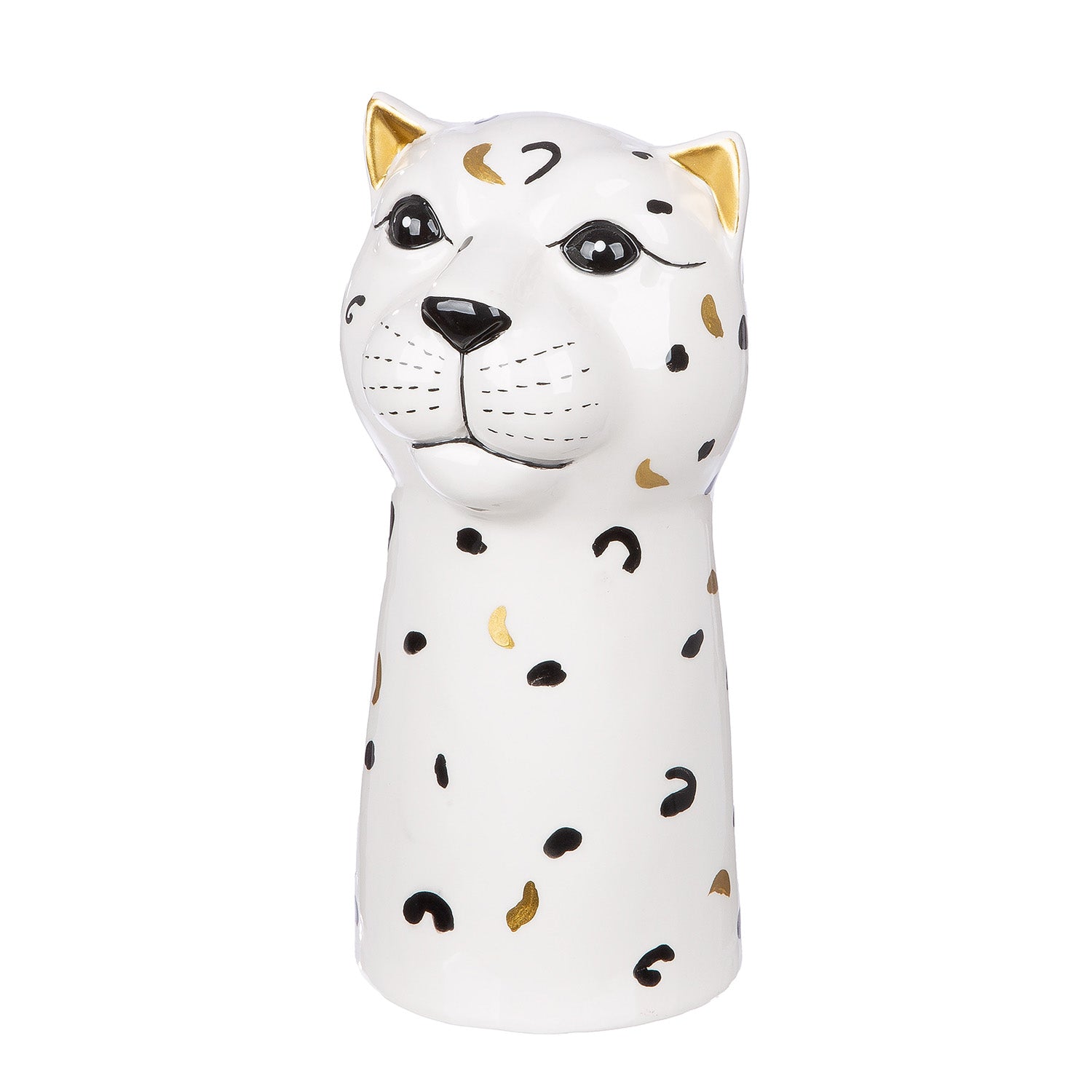 Op zoek naar een eyecather die niet op een standaard vaas lijkt? Deze eigentijdse keramische vaas in de vorm van een luipaardkop zorgt voor instant vrolijkheid in huis. Perfect voor verse bloemen, droogboeketten of zelfs als op zichzelf staande decoratie. Verkrijgbaar in twee speelse varianten: met strepen of met vlekken – voor iedere stijl een passende pantermatch!