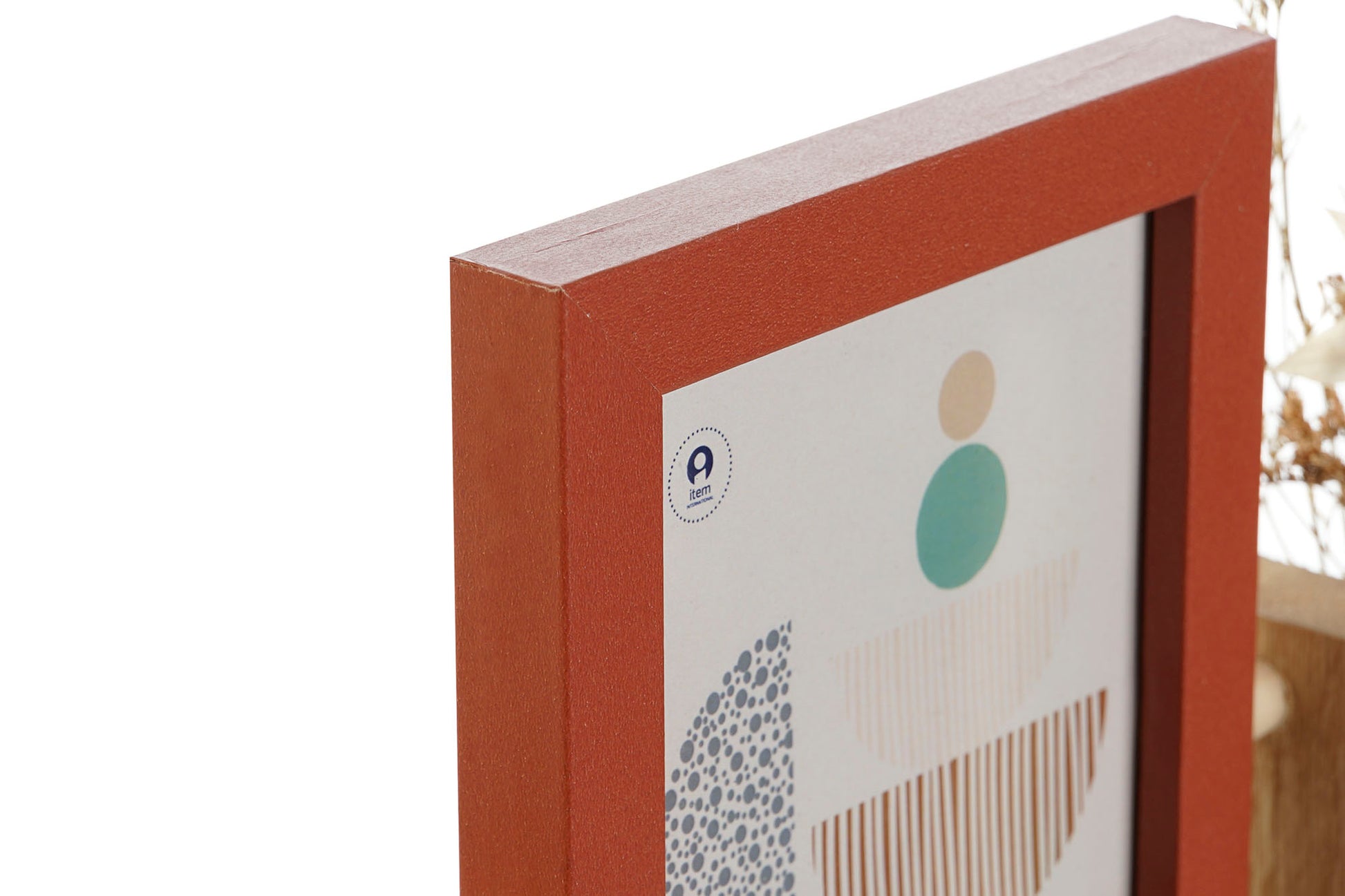 Een fotolijst die méér is dan alleen een fotolijst. Dit unieke item combineert natuurlijke materialen, strakke lijnen en een speels accent: een subtiel vaasje met droogbloemen. Het warme hout, de terracotta-kleurige rand en de zachte ronde vormen maken dit tot een verfijnde eyecatcher voor elk interieur.