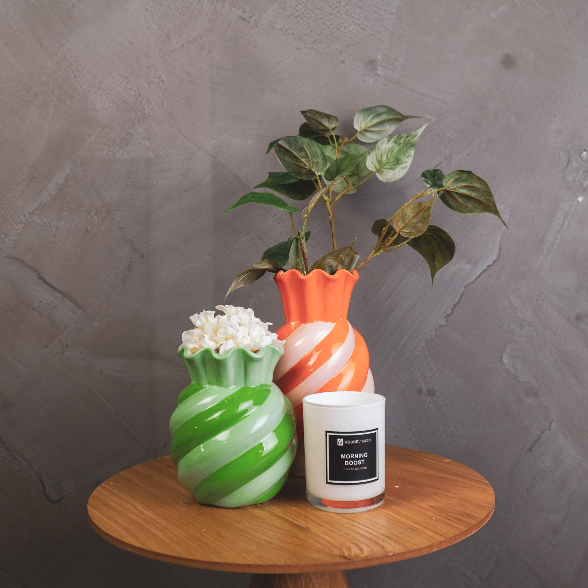 Groene Gedraaide Vaas – Aardewerk – 15,5 cm