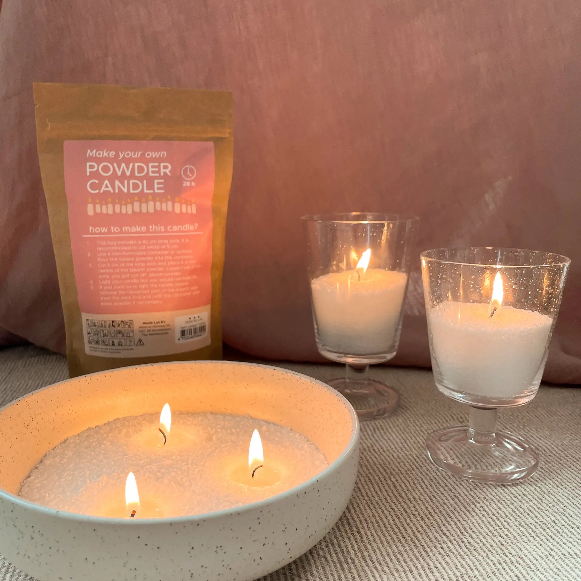Met deze set maak je in een paar seconden een prachtige, minimalistische kaars — geen gedoe met wax of potjes. Gewoon zand erin, lontjes erin… en genieten maar. ✨
