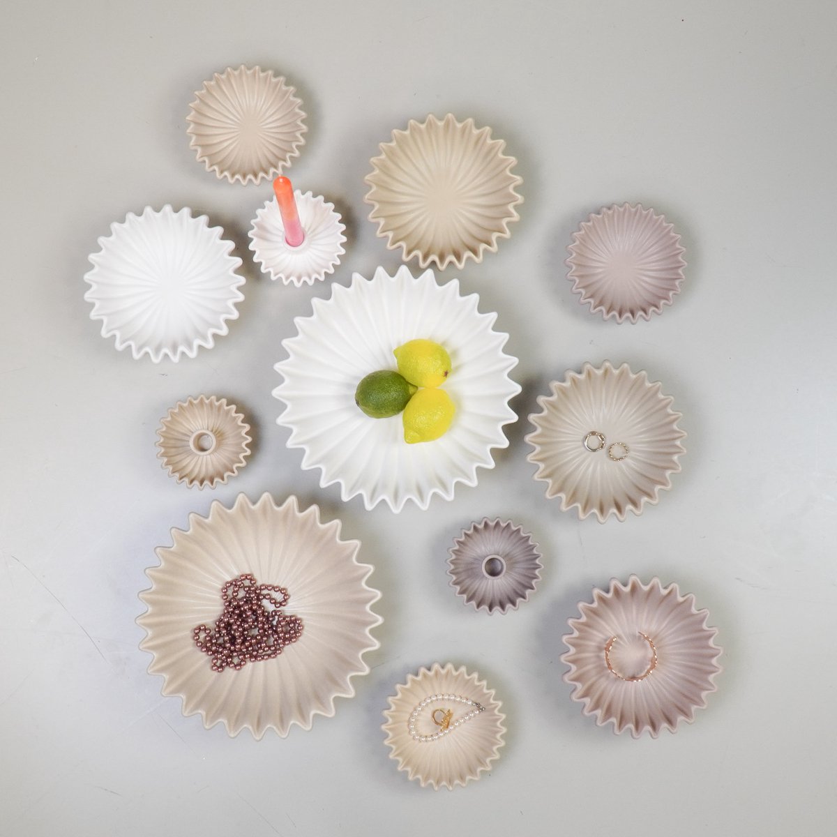 ✔ Housevitamin ribbel schaal in drie kleuren (wit, zand/beige, lichtroze)
