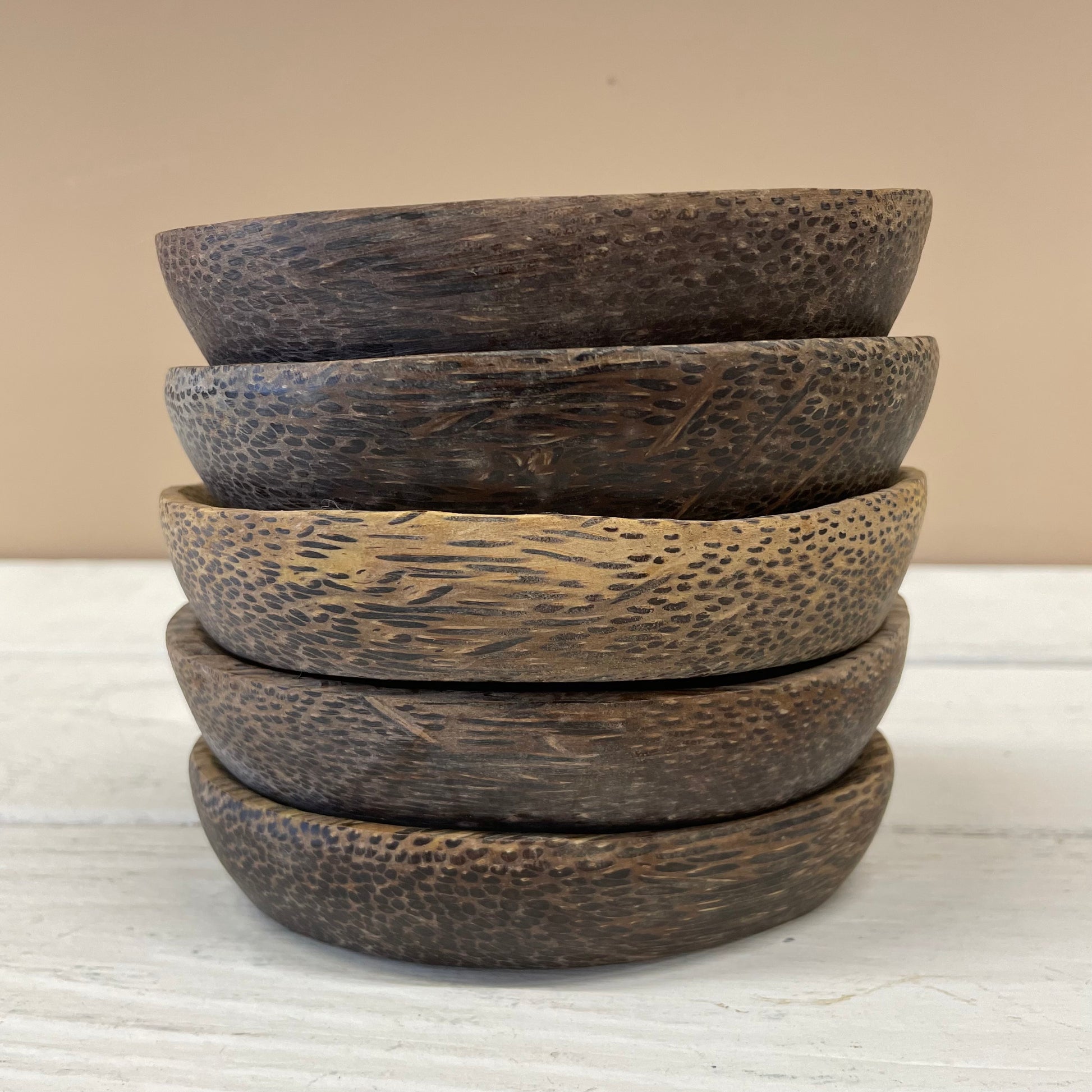 Het compacte formaat maakt dit accessoire ideaal voor gebruik op een salontafel, nachtkastje of in de badkamer. Elk schaaltje is uniek door de natuurlijke variaties in de structuur van het kokosnoot hout.
