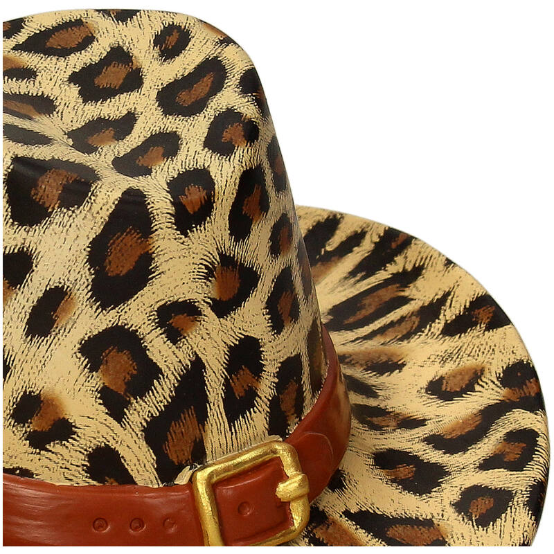 🐆 Panterprint LED-Cowboyhoed Beeld – Decoratief Ornament met Licht – 17,5 x 16,2 x 9,3 cm
