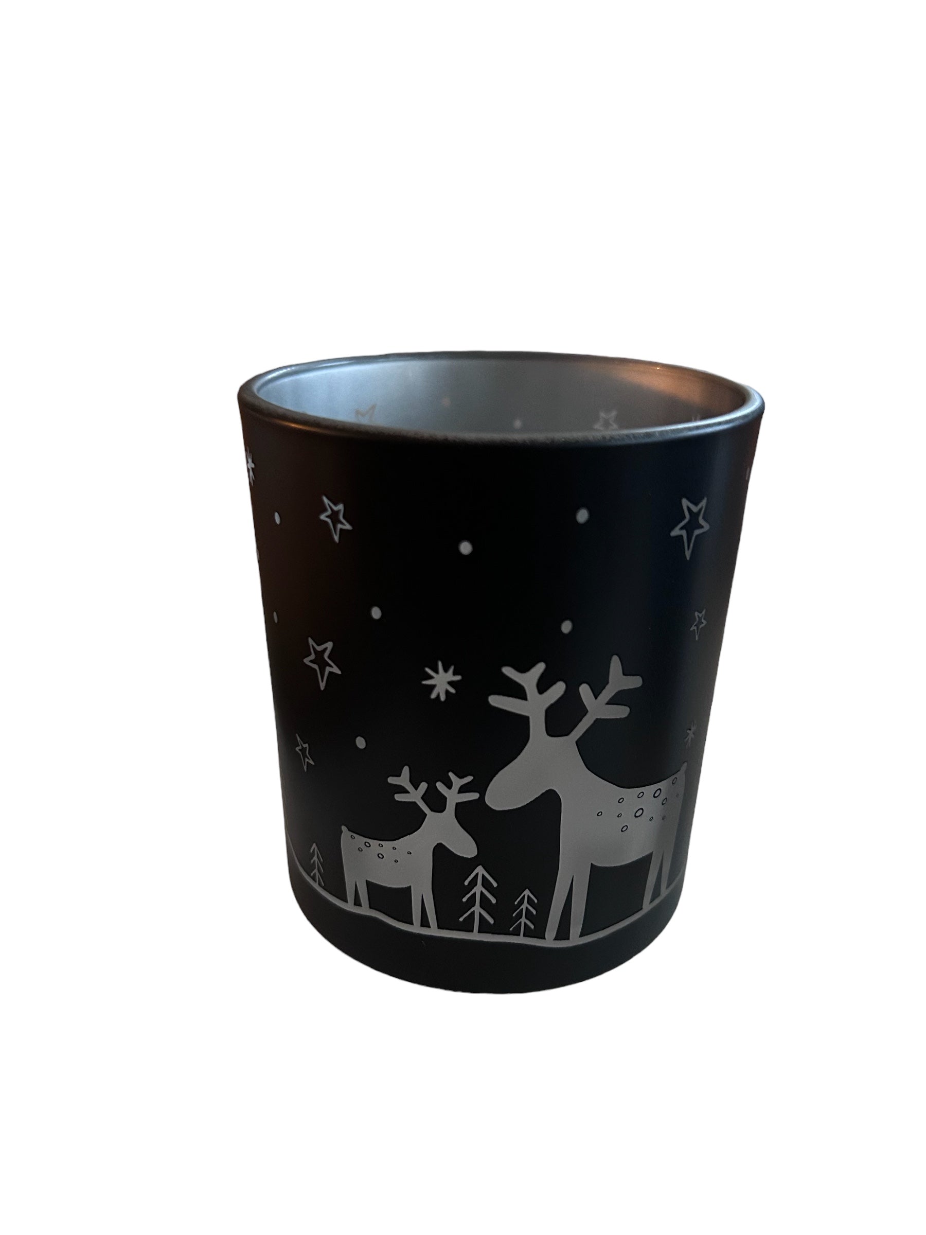 Breng stijl en gezelligheid in huis met deze prachtige theelichthouder met moderne rendieren in zwart en grijs. Het glazen ontwerp is voorzien van een sfeervol kerstdecor met rendieren, een winterbos, sneeuw en sterren. Zodra je er een theelichtje in brandt, ontstaat een warme gloed die je interieur omtovert tot een knusse en feestelijke plek.