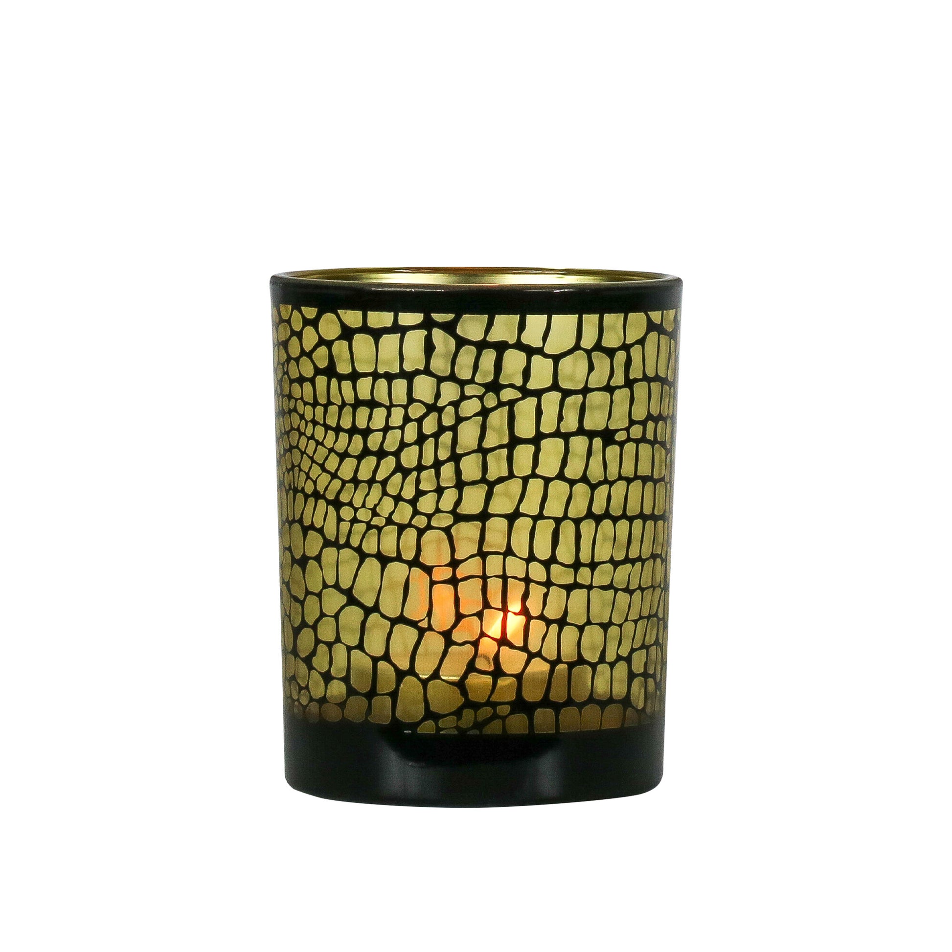 Theelichthouders Krokodillenprint Zwart & Goud – Luxe Glas in 3 Maten